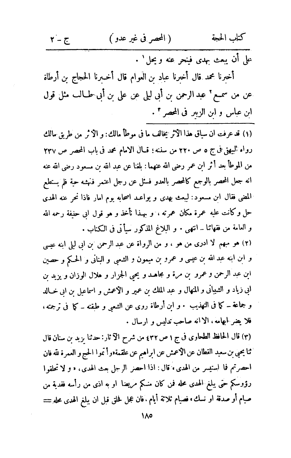 أخبرنَا مُحَمَّد قَالَ أخبرنَا بن الْعَوام قَالَ أخبرنَا الْحجَّاج بن أَرْطَاة عَن من سمع عبد الرَّحْمَن بن أبي ليلى عَن عَليّ بن أبي طَالب مثل قَول ابْن عَبَّاس وَابْن الزبير فِي الْمحصر
