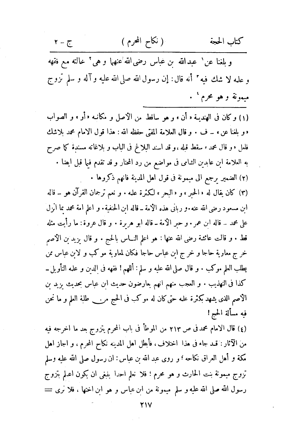 وبلغنا عَن عبد الله بن عَبَّاس رَضِي الله عَنْهُمَا وَهِي خَالَته مَعَ فقهه وَعلمه لَا شكّ فِيهِ أَنه قَالَ إِن رَسُول الله صلى الله عَلَيْهِ وَسلم تزوج مَيْمُونَة وَهُوَ محرم
