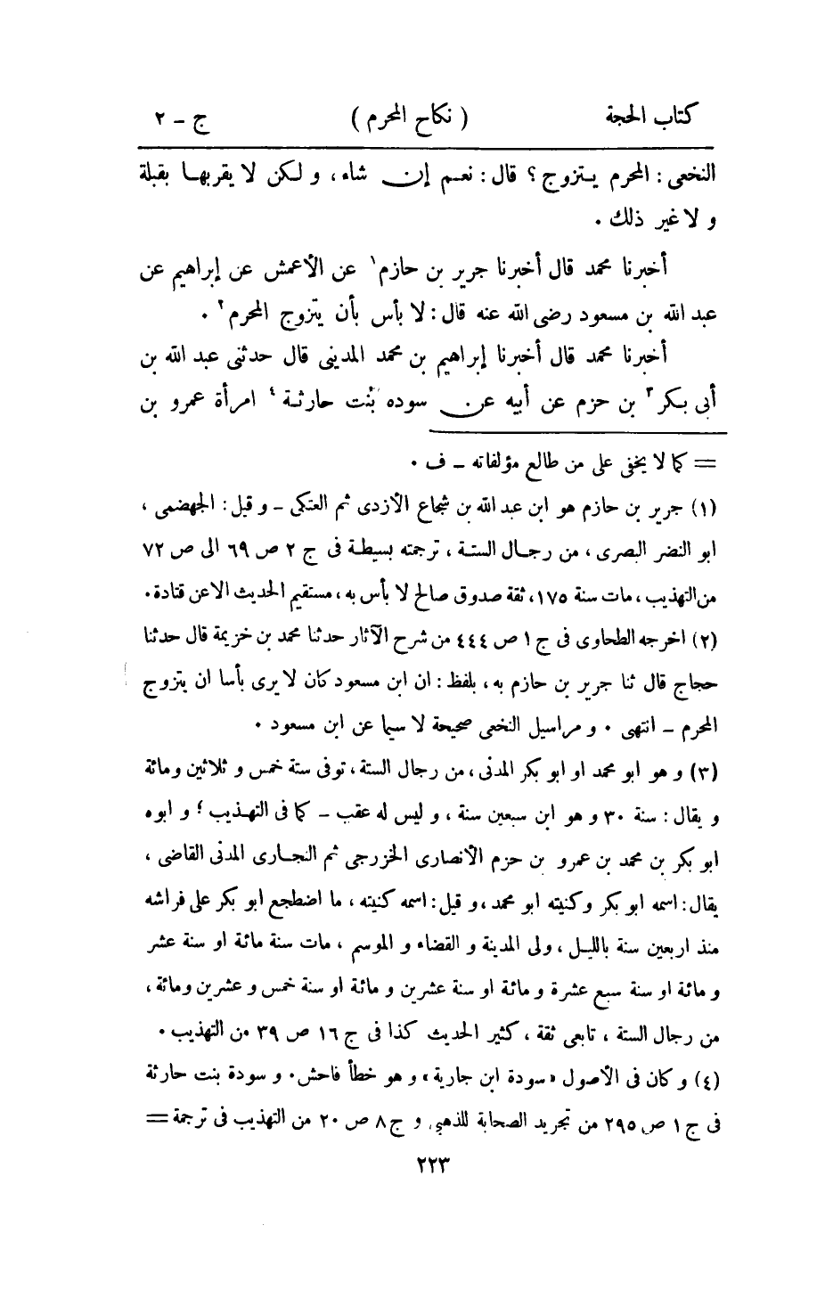 اُخْبُرْنَا مُحَمَّد قَالَ اُخْبُرْنَا جرير بن حَازِم عَن الاعمش عَن ابراهيم عَن عبد الله بن مَسْعُود رَضِي الله عَنهُ قَالَ لَا بَأْس بِأَن يتَزَوَّج الْمحرم