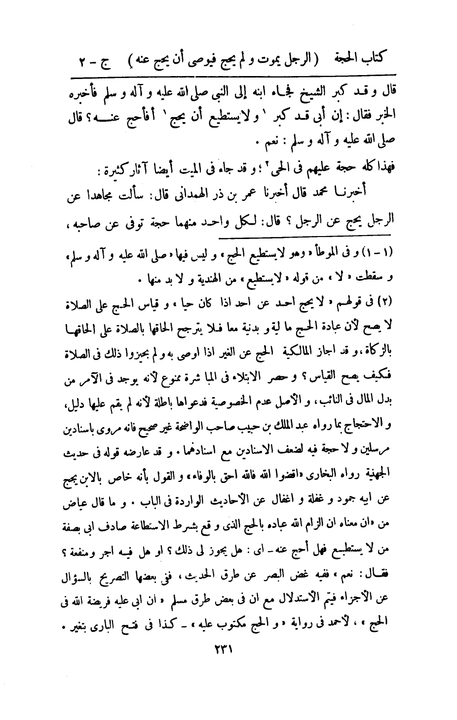 قَالَ وَقد كبر الشَّيْخ فجَاء ابْنه الى النَّبِي صلى الله عَلَيْهِ وَسلم فَأخْبرهُ الْخَبَر فَقَالَ ان أبي قد كبر وَلَا يَسْتَطِيع ان يحجّ افأحج عَنهُ قَالَ صلى الله عَلَيْهِ وَسلم نعم