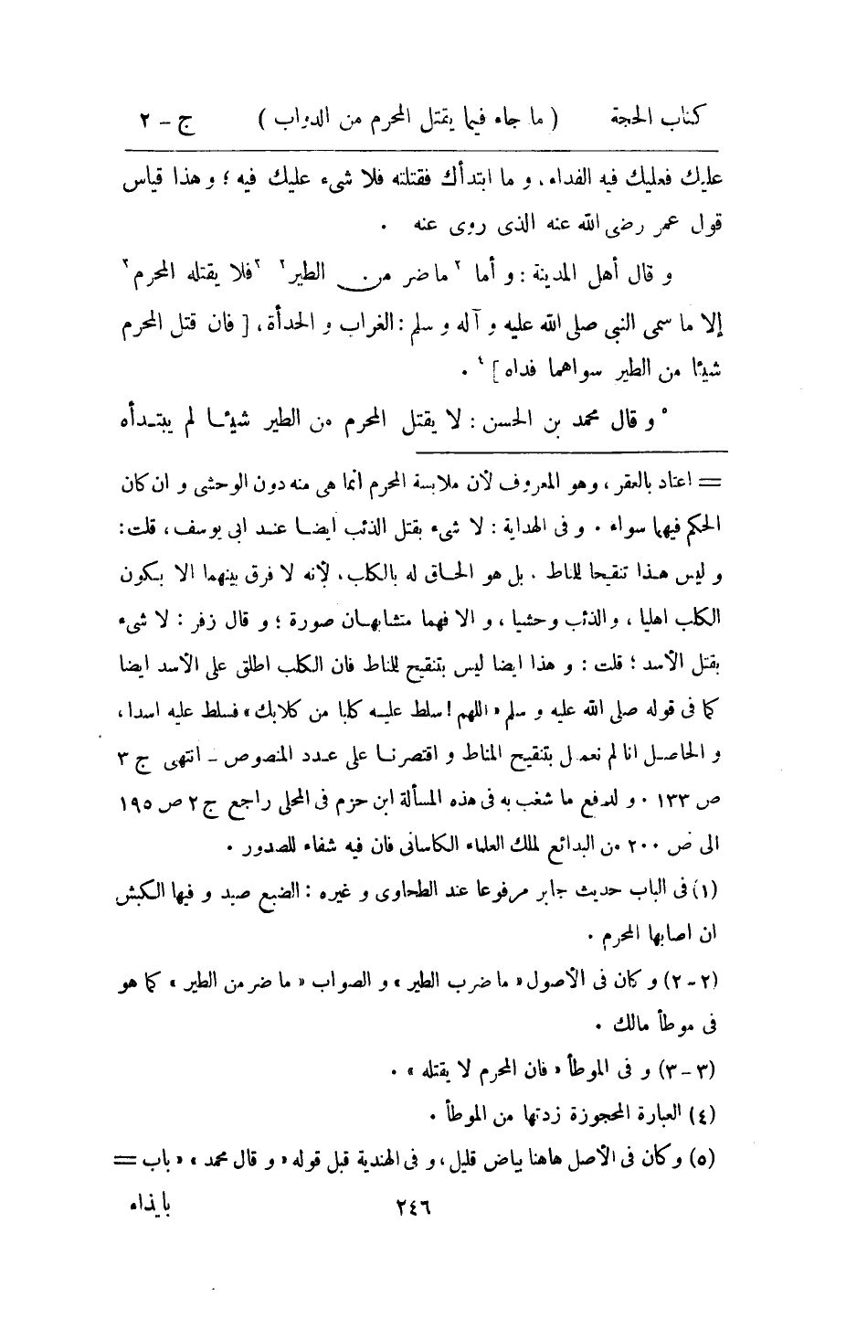 وَقَالَ أهل الْمَدِينَة واما مَا ضرّ من الطير فَلَا يقْتله الْمحرم الا مَا سمى النَّبِي صلى الله عَلَيْهِ وَسلم الْغُرَاب والحدأة فان قتل الْمحرم شَيْئا من الطير سواهُمَا فدَاه