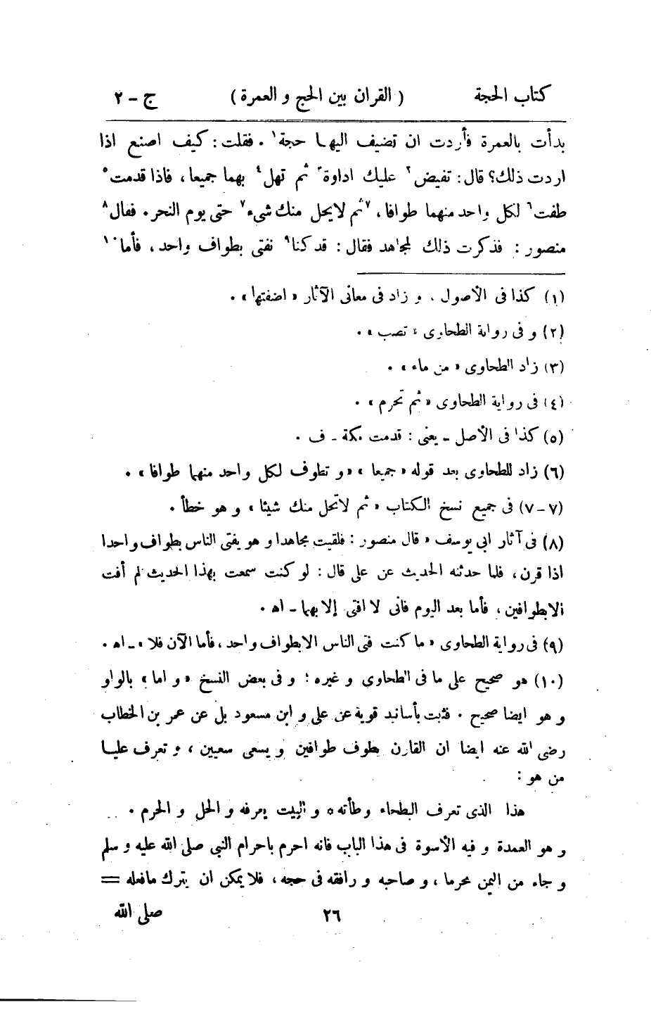 بدأت بِالْعُمْرَةِ فَأَرَدْت ان تضيف إِلَيْهَا حجَّة فَقلت كَيفَ اصْنَع إِذا اردت ذَلِك قَالَ تفيض عَلَيْك إداوة ثمَّ تهل بهما جَمِيعًا فَإِذا قدمت طفت لكل وَاحِد مِنْهُمَا طَوافا ثمَّ لَا يحل مِنْك شَيْء حَتَّى يَوْم النَّحْر فَقَالَ مَنْصُور فَذكرت ذَلِك لمجاهد فَقَالَ قد كُنَّا نفتى بِطواف وَاحِد فَأَما