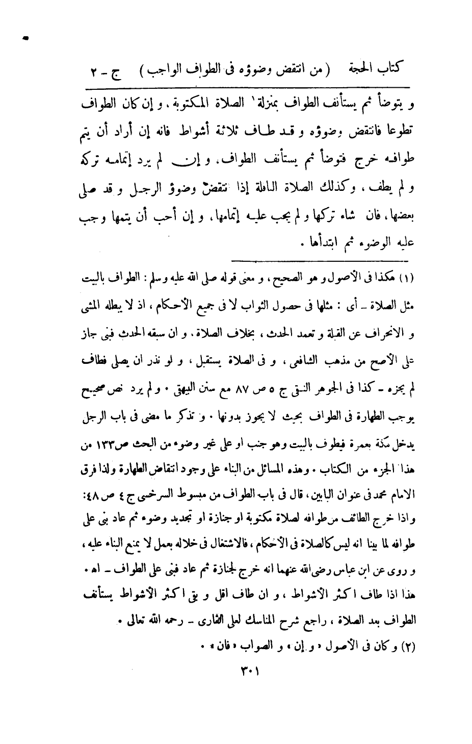 وَيتَوَضَّأ ثمَّ يسْتَأْنف الطّواف بِمَنْزِلَة الصَّلَاة الْمَكْتُوبَة وان كَانَ الطّواف تَطَوّعا فَانْتقضَ وضوؤه وَقد طَاف ثَلَاثَة اشواط فَإِنَّهُ ان اراد ان يتم طَوَافه خرج فَتَوَضَّأ ثمَّ يسْتَأْنف الطّواف وان لم يرد اتمامه تَركه وَلم يطف وَكَذَلِكَ الصَّلَاة النَّافِلَة إِذا انْتقض وضوؤ الرجل وَقد صلى بَعْضهَا فان شَاءَ تَركهَا وَلم يجب عَلَيْهِ اتمامها وان احب ان يُتمهَا وَجب عَلَيْهِ الْوضُوء ثمَّ ابتدأها