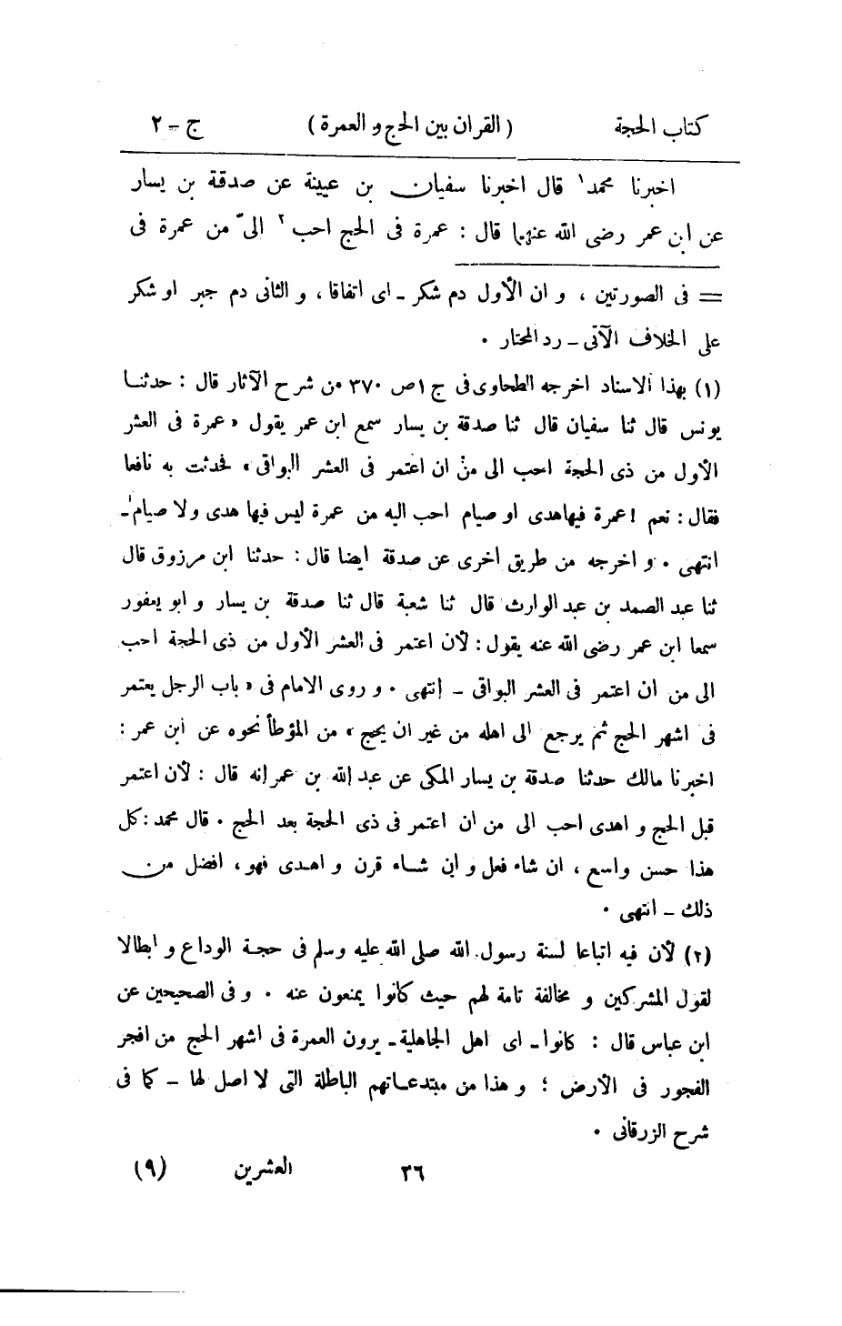 اُخْبُرْنَا مُحَمَّد قَالَ اُخْبُرْنَا سُفْيَان بن عُيَيْنَة عَن صَدَقَة بن يسَار عَن ابْن عمر رَضِي الله عَنْهُمَا قَالَ عمْرَة فِي الْحَج أحب إِلَيّ من عمْرَة فِي