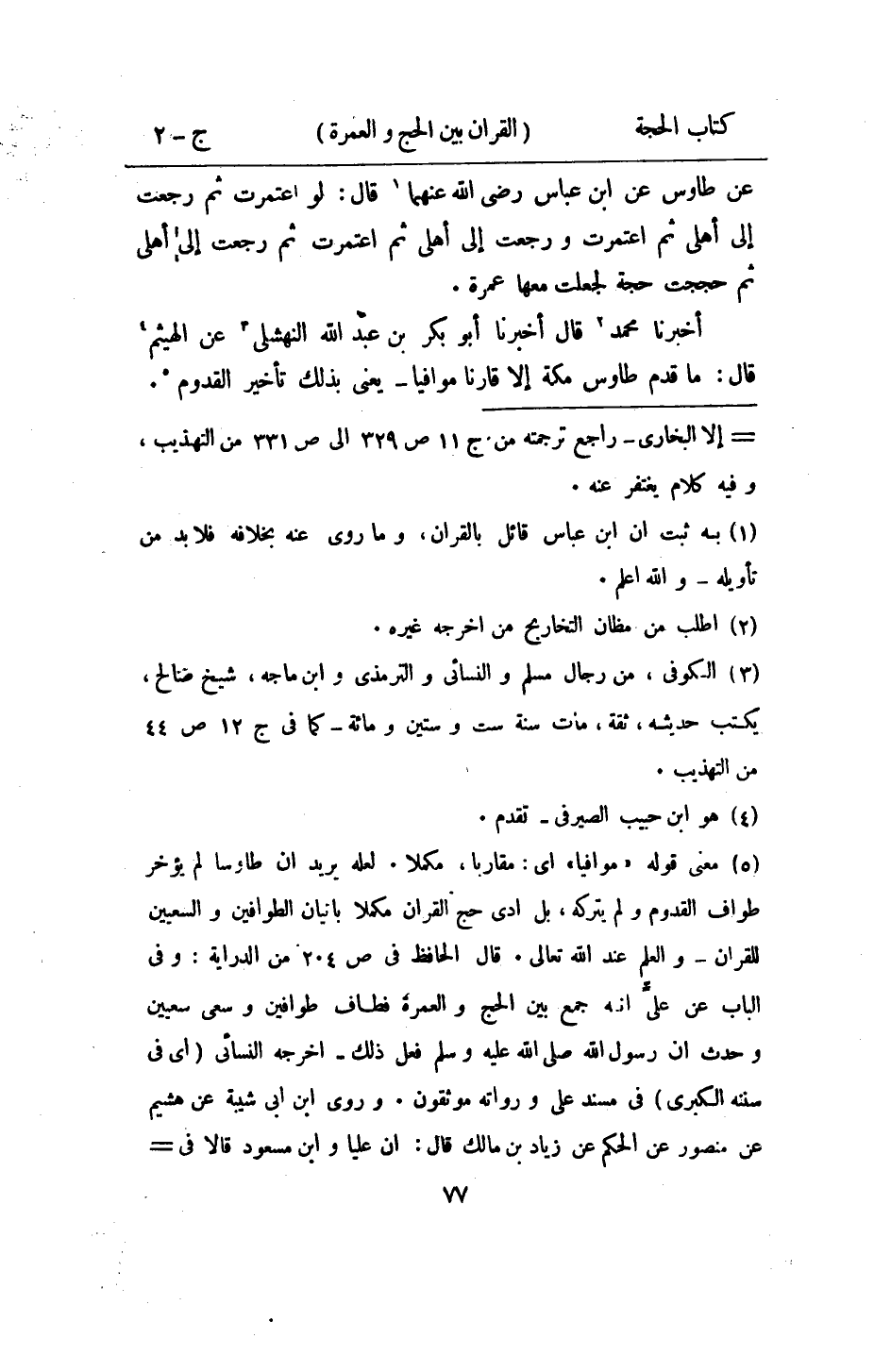 اُخْبُرْنَا مُحَمَّد قَالَ اُخْبُرْنَا أَبُو بكر بن عبد الله النَّهْشَلِي عَن الْهَيْثَم قَالَ مَا قدم طَاوس مَكَّة الا قَارنا موافيا يَعْنِي بذلك تَأْخِير الْقدوم