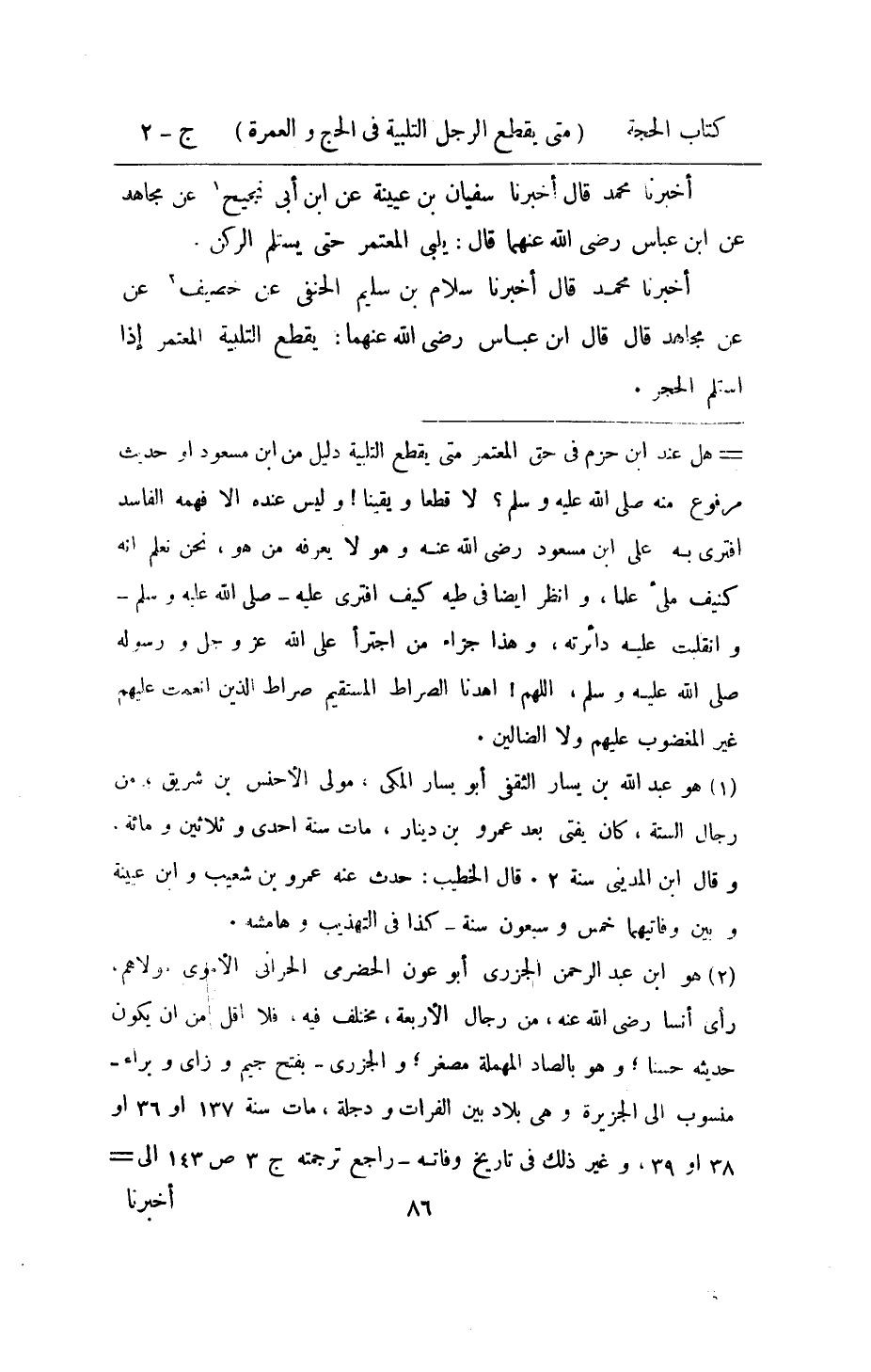 اُخْبُرْنَا مُحَمَّد قَالَ اُخْبُرْنَا سَلام بن سليم الْحَنَفِيّ عَن خصيف عَن مُجَاهِد قَالَ قَالَ ابْن عَبَّاس رَضِي الله عَنْهُمَا يقطع التَّلْبِيَة الْمُعْتَمِر إِذا اسْتَلم الْحجر