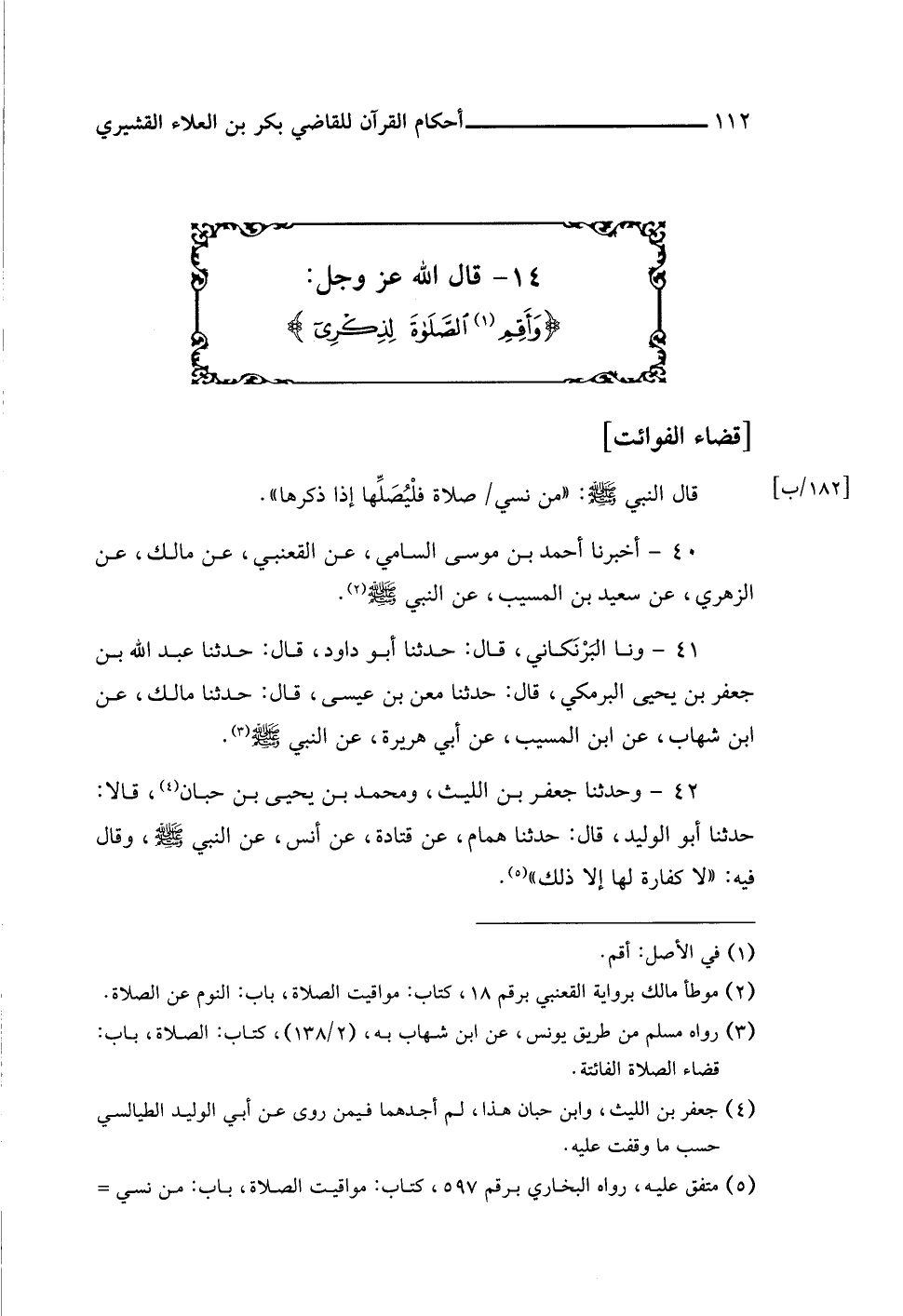 (¬٢) موطأ مالك برواية القعنبي برقم ١٨، كتاب: مواقيت الصلاة، باب: النوم عن الصلاة.