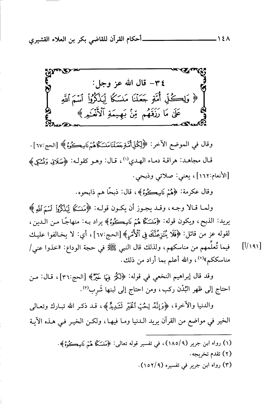 (¬١) رواه ابن جرير (٩/ ١٨٥)، في تفسير قوله تعالى: {مَنْسَكًا هُمْ نَاسِكُوهُ}.