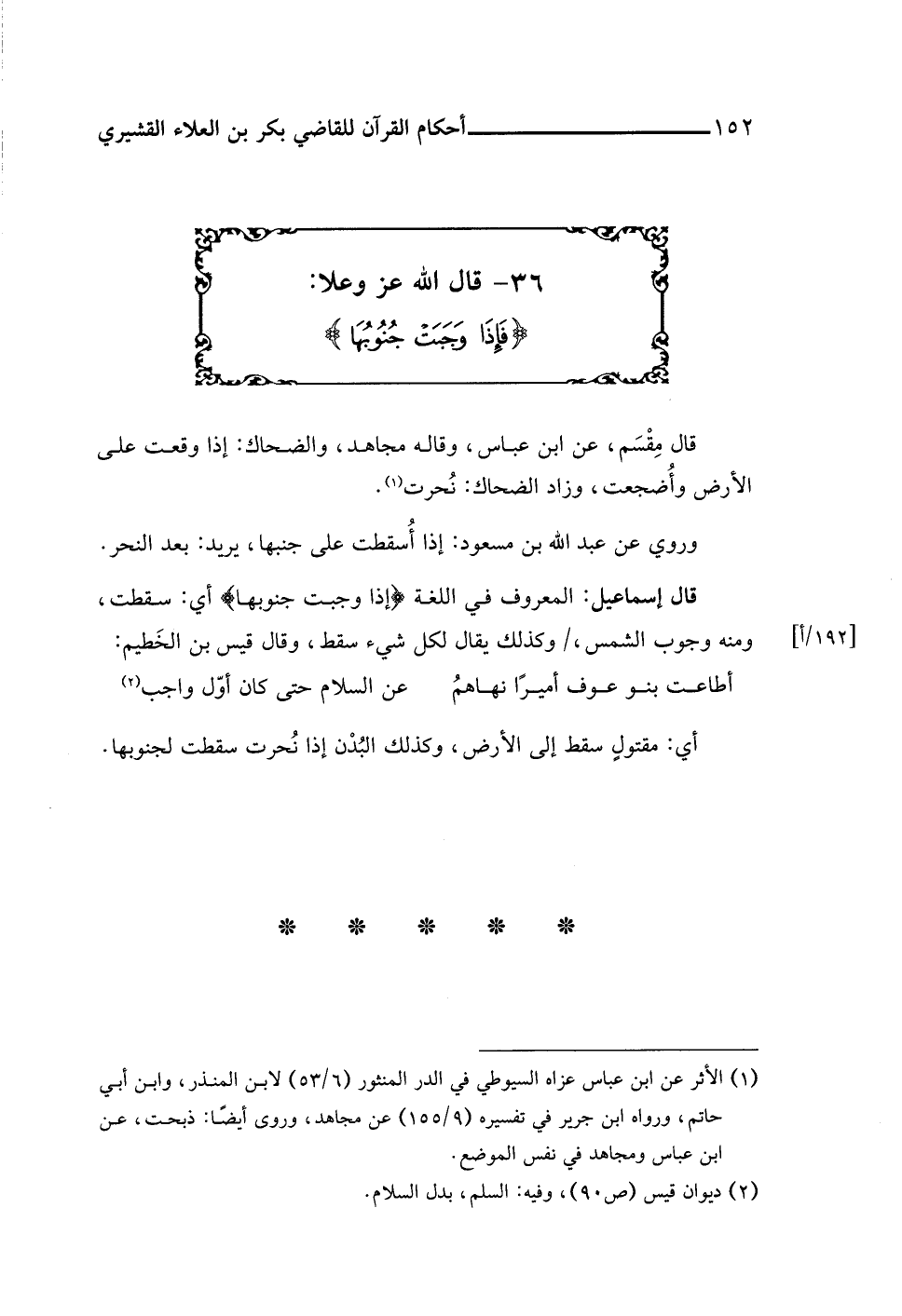 ٣٦ - قال اللَّه عز وعلا: {فَإِذَا وَجَبَتْ جُنُوبُهَا}
