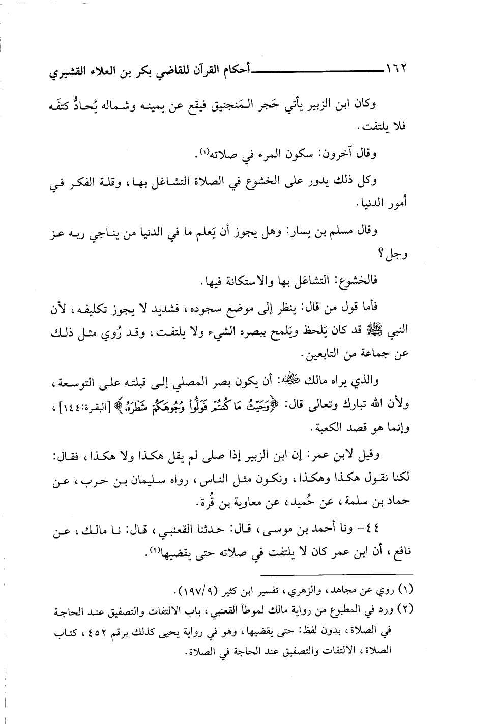 ٤٤ - ونا أحمد بن موسى، قال: حدثنا القعنبي، قال: نا مالك، عن نافع، أن ابن عمر كان لا يلتفت في صلاته حتى يقضيها (¬٢).