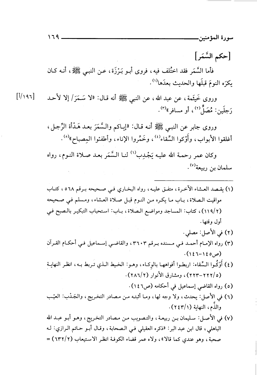 وروى خَيثَمة، عن عبد اللَّه، عن النبي -صلى اللَّه عليه وسلم- أنه قال: "لا سَمَرَ إلا لأحد رَجلَين: مُصَلٍّ (¬٢)، أو مسافر" (¬٣).