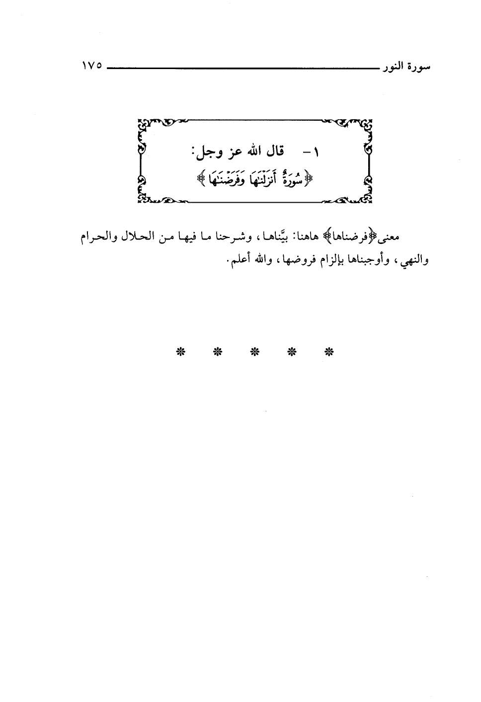 ١ - قال اللَّه عز وجل: {سُورَةٌ أَنْزَلْنَاهَا وَفَرَضْنَاهَا}