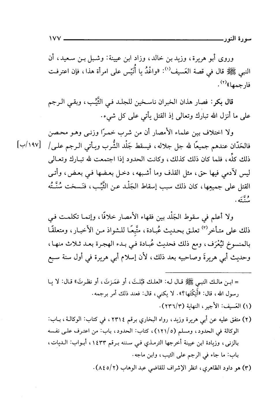 ولا أعلم في سقوط الجَلْد بين فقهاء الأمصار خلافًا، وإنما تكلمت في ذلك على متأخر (¬٣) تعلق بحديث عُبادة، متَّبِعًا للشواذ من الأخبار، ومتعلقًا بالمنسوخ ليُعْرَف، ومع ذلك فحديث عُبادة في بدء الهجرة بعد ثلاث منها، وحديث أبي هريرةَ وصاحبيه بعد ذلك، لأن إسلام أبي هريرة في أول سنة سبع