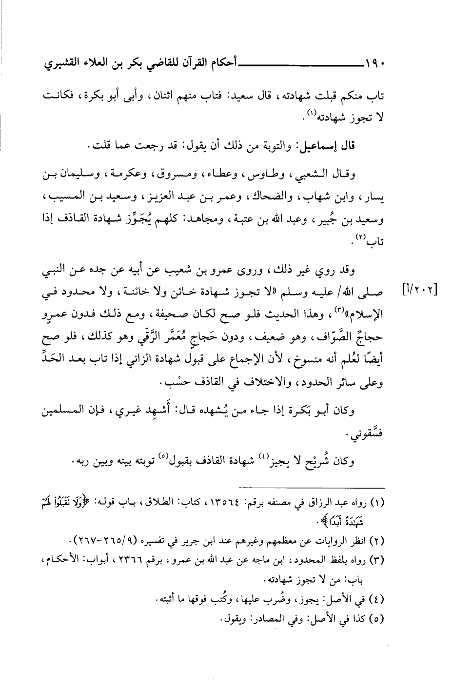 وقال الشعبي، وطاوس، وعطاء، ومسروق، وعكرمة، وسليمان بن يسار، وابن شهاب، والضحاك، وعمر بن عبد العزيز، وسعيد بن المسيب، وسعيد بن جُبير، وعبد اللَّه بن عتبة، ومجاهد: كلهم يُجَوِّز شهادة القاذف إذا تاب (¬٢).