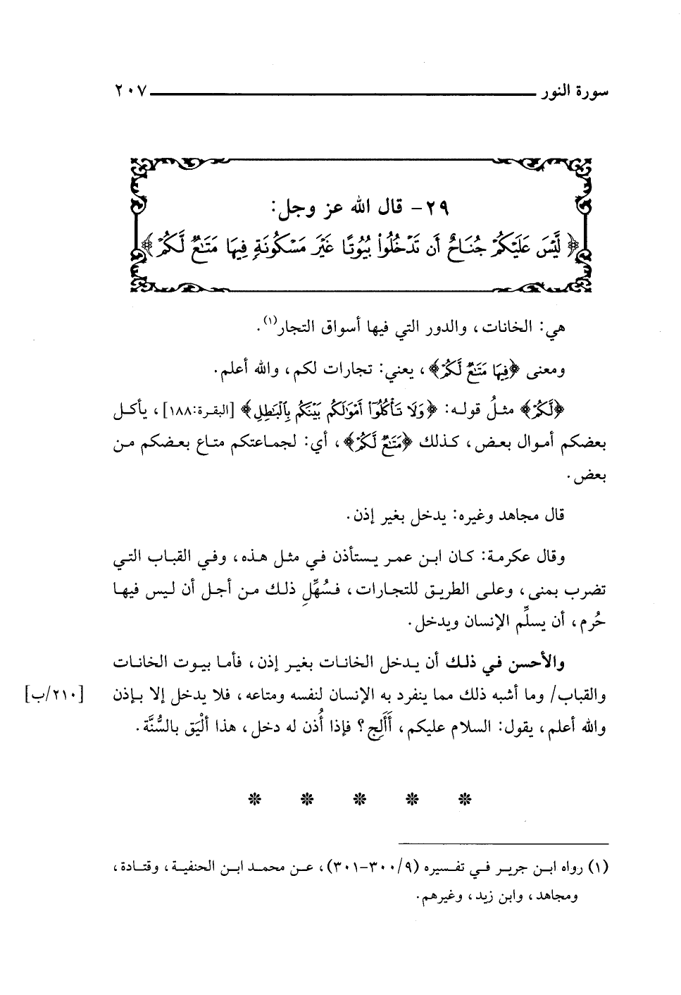 ٢٩ - قال اللَّه عز وجل: {لَيْسَ عَلَيْكُمْ جُنَاحٌ أَنْ تَدْخُلُوا بُيُوتًا غَيْرَ مَسْكُونَةٍ فِيهَا مَتَاعٌ لَكُمْ}