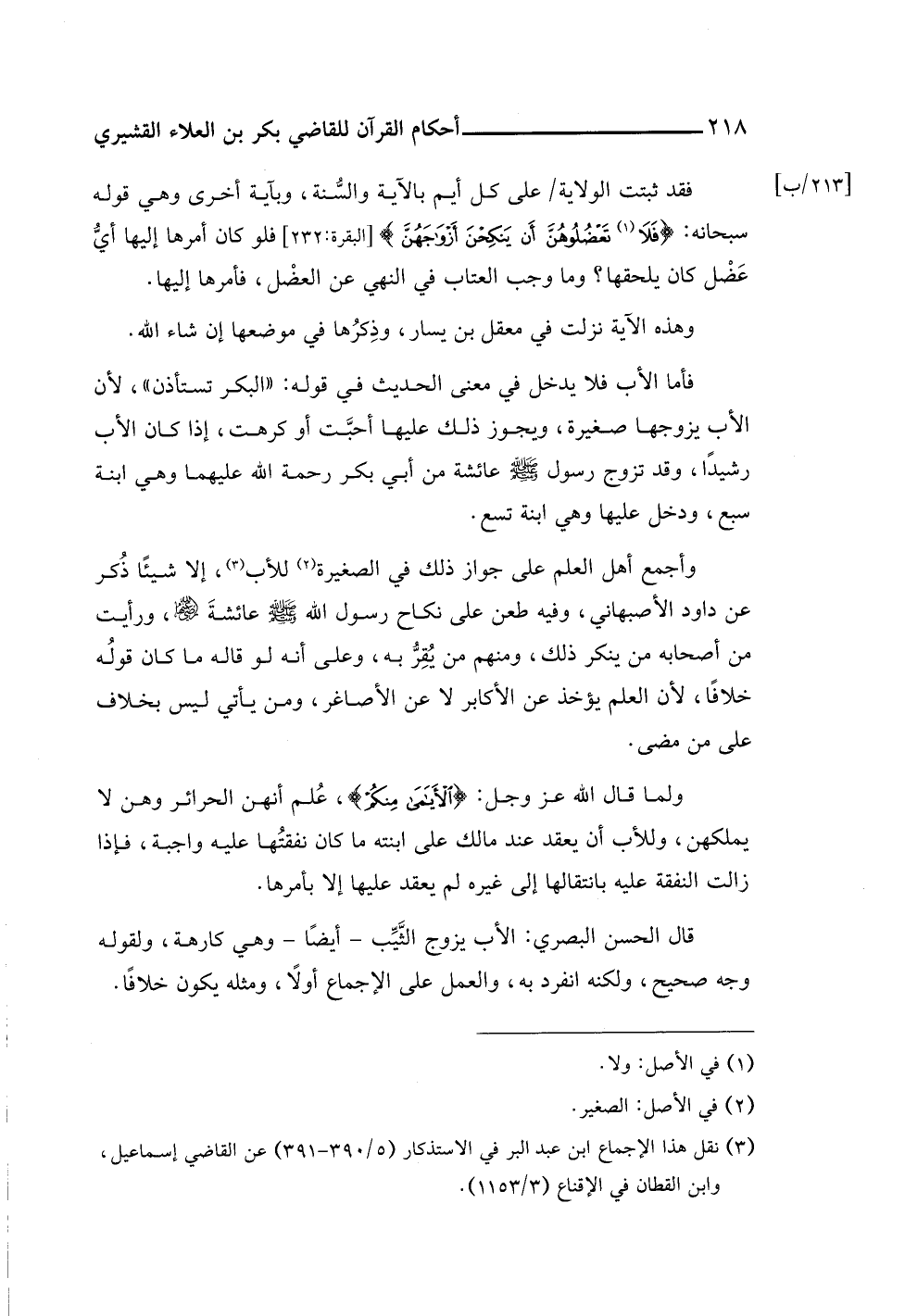 (¬٣) نقل هذا الإجماع ابن عبد البر في الاستذكار (٥/ ٣٩٠ - ٣٩١) عن القاضي إسماعيل، وابن القطان في الإقناع (٣/ ١١٥٣).