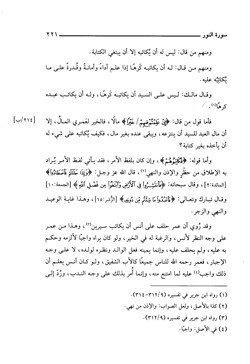 فأما قول من قال: {إِنْ عَلِمْتُمْ فِيهِمْ خَيْرًا} مالًا، فالخير لعَمري المالُ، إلا أن مال العبد للسيد أن ينتزعه، ويبقى عنده بغير مال، فكيف يُكاتبه على شيء له أن يأخذه بغير كتابة؟