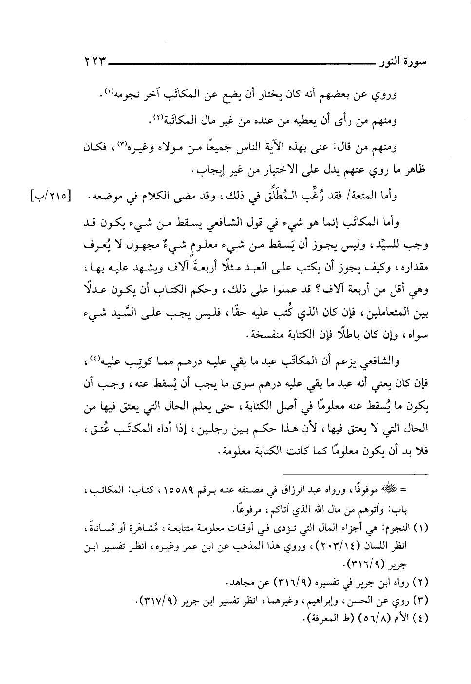 (¬١) النجوم: هي أجزاء المال التي تؤدى في أوقات معلومة متتابعة، مُشاهَرة أو مُساناةً، انظر اللسان (١٤/ ٢٠٣)، وروي هذا المذهب عن ابن عمر وغيره، انظر تفسير ابن جرير (٩/ ٣١٦).