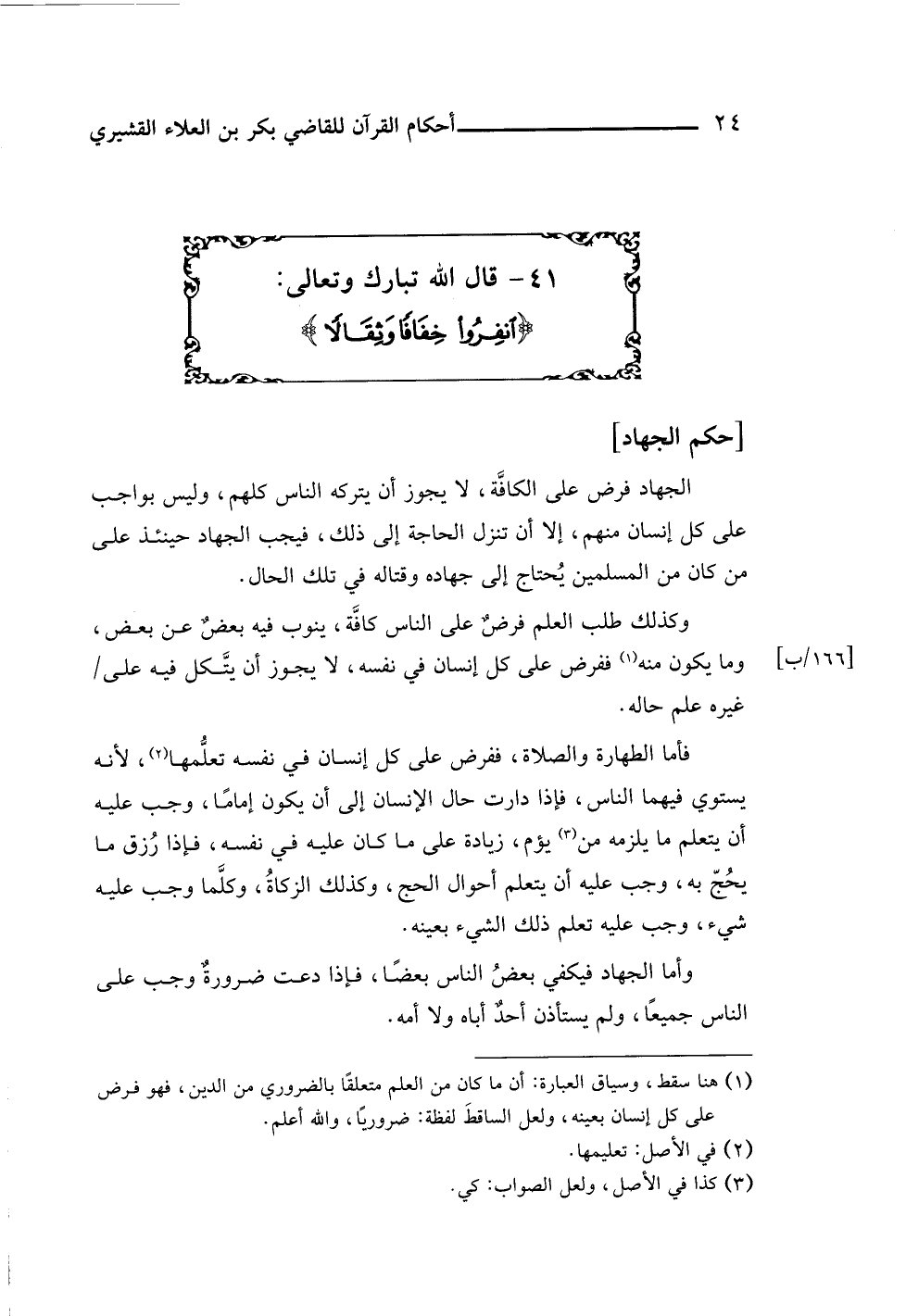 ٤١ - قال اللَّه تبارك وتعالى: {انْفِرُوا خِفَافًا وَثِقَالًا}