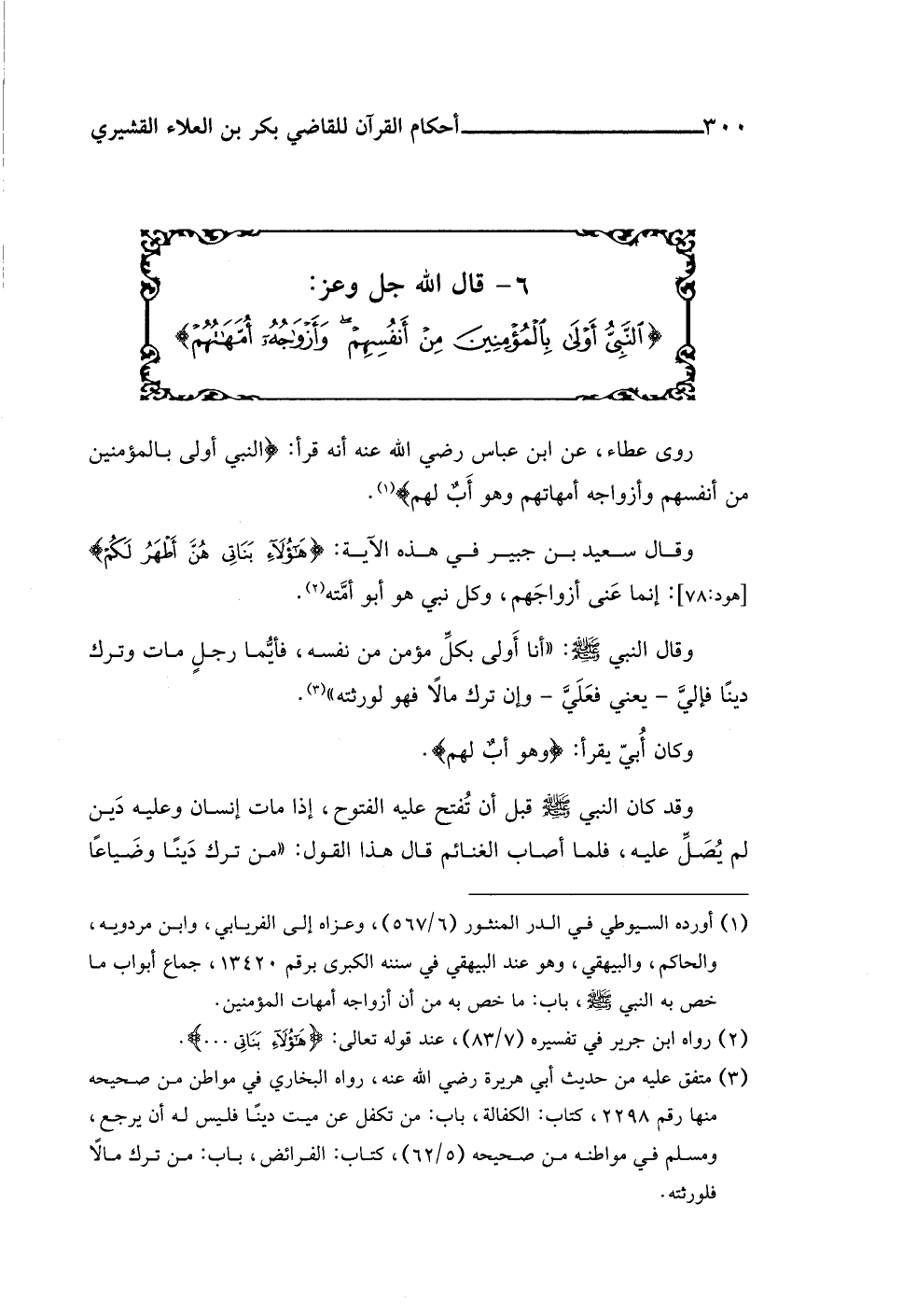 ٦ - قال اللَّه جل وعز: {النَّبِيُّ أَوْلَى بِالْمُؤْمِنِينَ مِنْ أَنْفُسِهِمْ وَأَزْوَاجُهُ أُمَّهَاتُهُمْ}