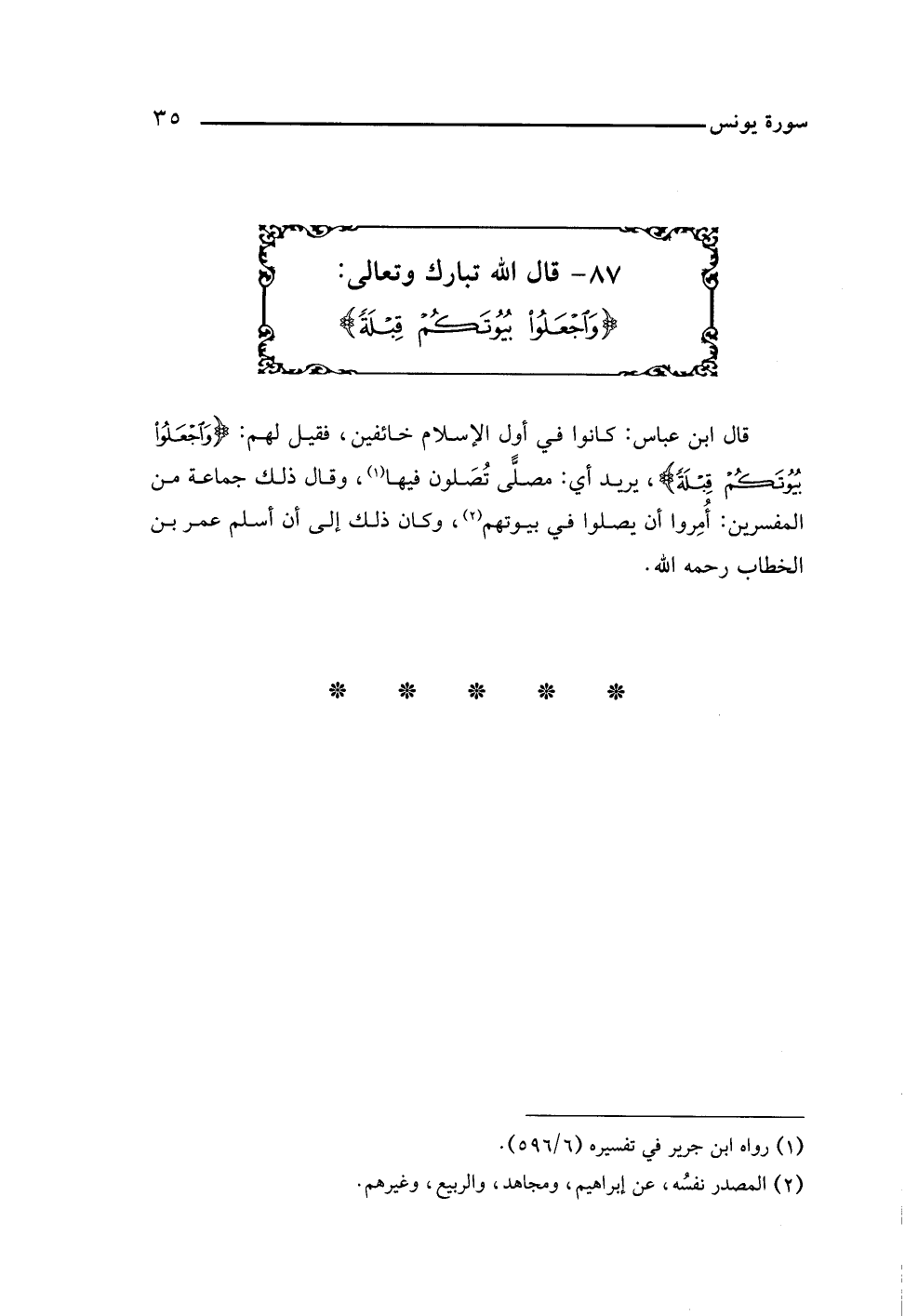 ٨٧ - قال اللَّه تبارك وتعالى: {وَاجْعَلُوا بُيُوتَكُمْ قِبْلَةً}
