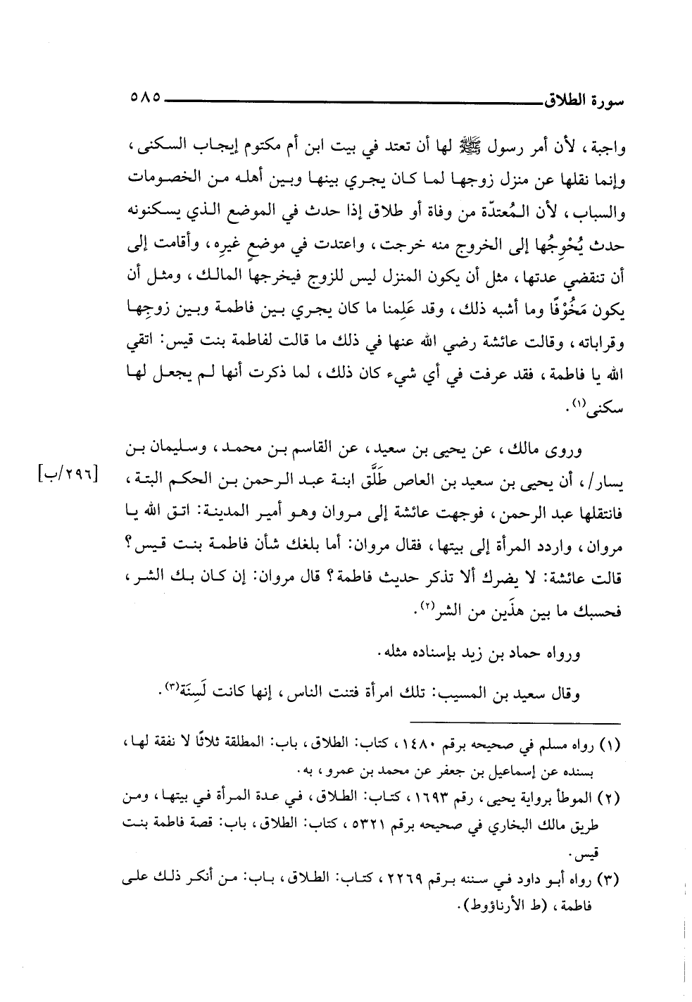 (¬٢) الموطأ برواية يحيى، رقم ١٦٩٣، كتاب: الطلاق، في عدة المرأة في بيتها، ومن طريق مالك البخاري في صحيحه برقم ٥٣٢١، كتاب: الطلاق، باب: قصة فاطمة بنت قيس.