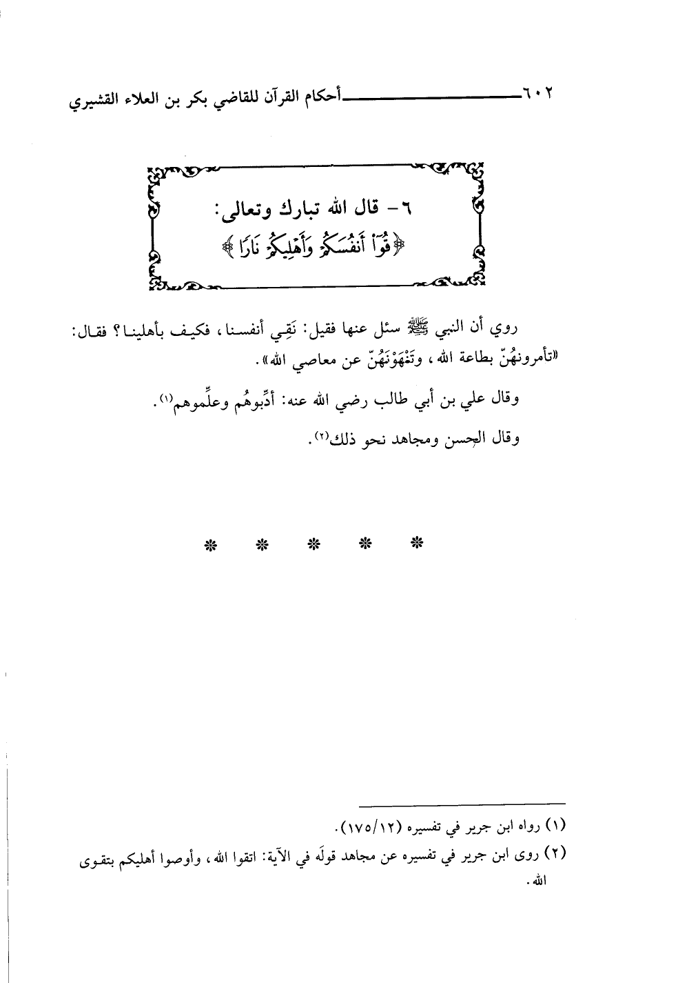 (¬٢) روى ابن جرير في تفسيره عن مجاهد قولَه في الآية: اتقوا اللَّه، وأوصوا أهليكم بتقوى اللَّه.