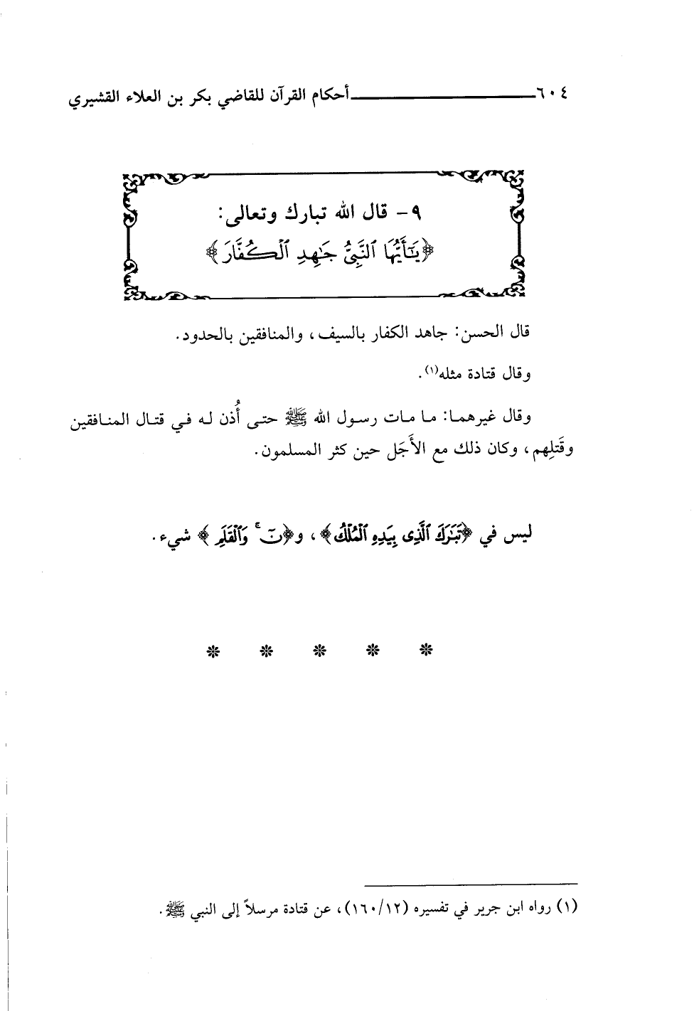 ٩ - قال اللَّه تبارك وتعالى: {يَاأَيُّهَا النَّبِيُّ جَاهِدِ الْكُفَّارَ}