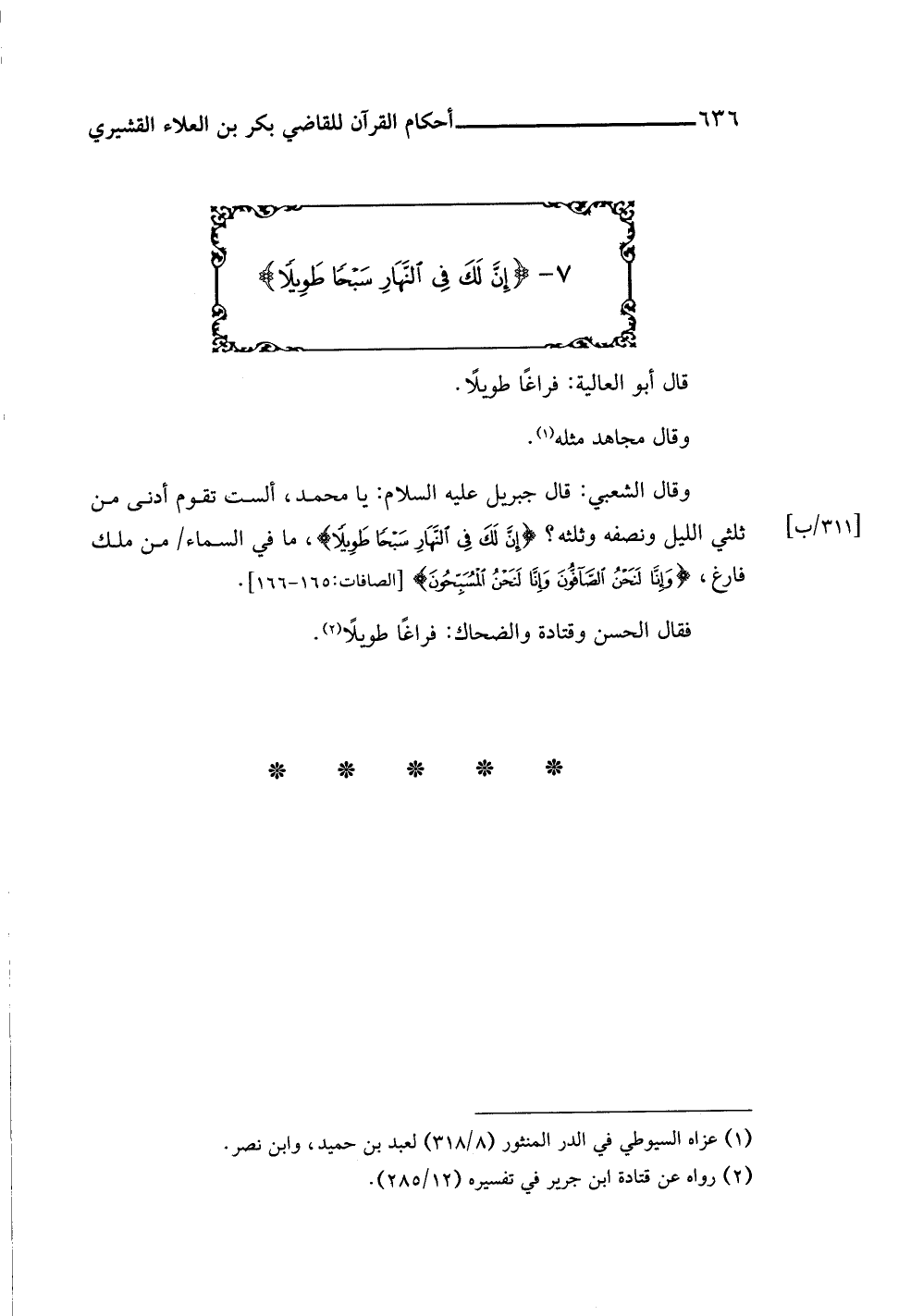 ٧ - {إِنَّ لَكَ فِي النَّهَارِ سَبْحًا طَوِيلًا}