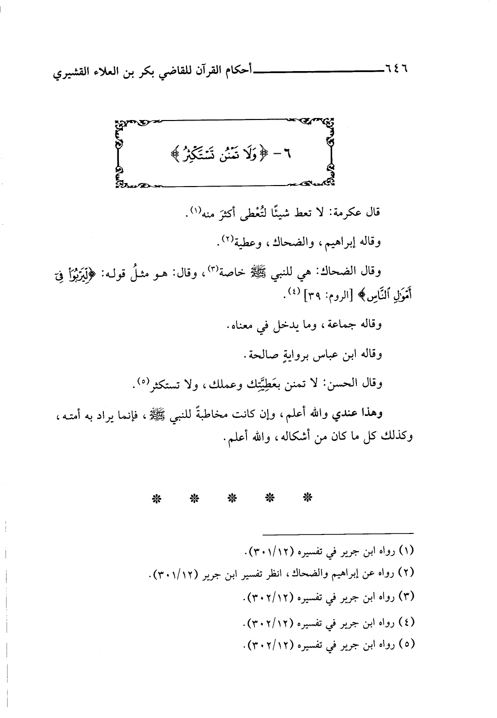 ٦ - {وَلَا تَمْنُنْ تَسْتَكْثِرُ}