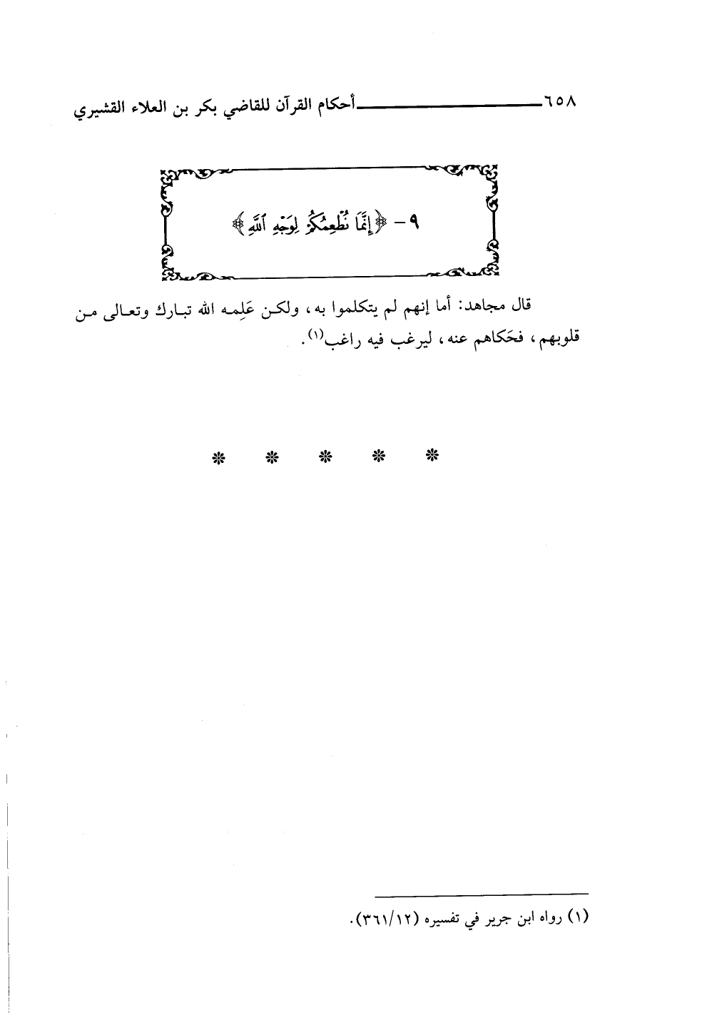 ٩ - {إِنَّمَا نُطْعِمُكُمْ لِوَجْهِ}
