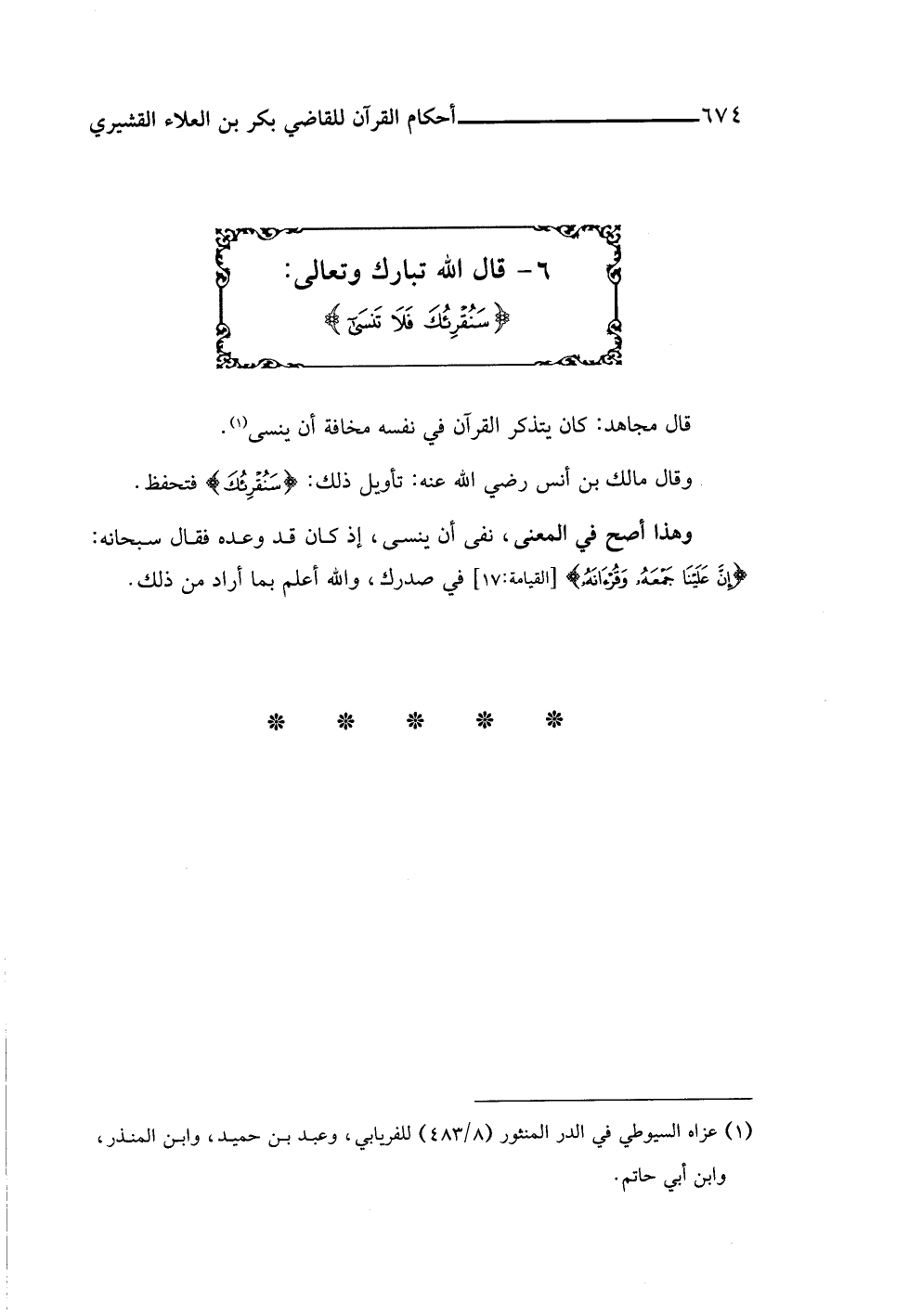 وقال مالك بن أنس رضي اللَّه عنه: تأويل ذلك: {سَنُقْرِئُكَ} فتحفظ.