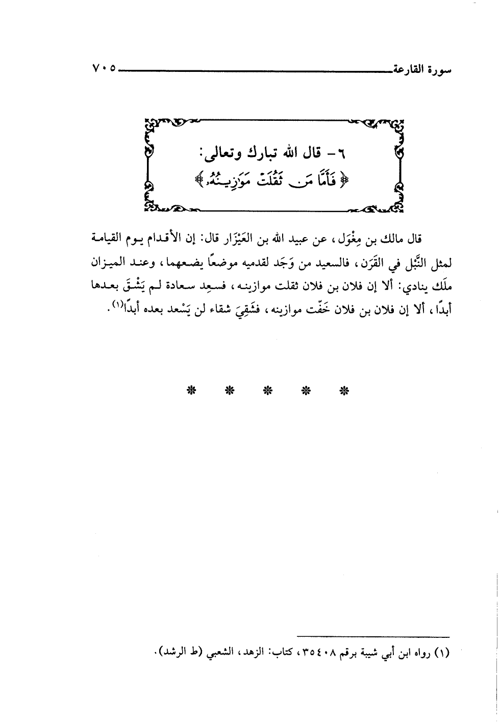 ٦ - قال اللَّه تبارك وتعالى: {فَأَمَّا مَنْ ثَقُلَتْ مَوَازِينُهُ}