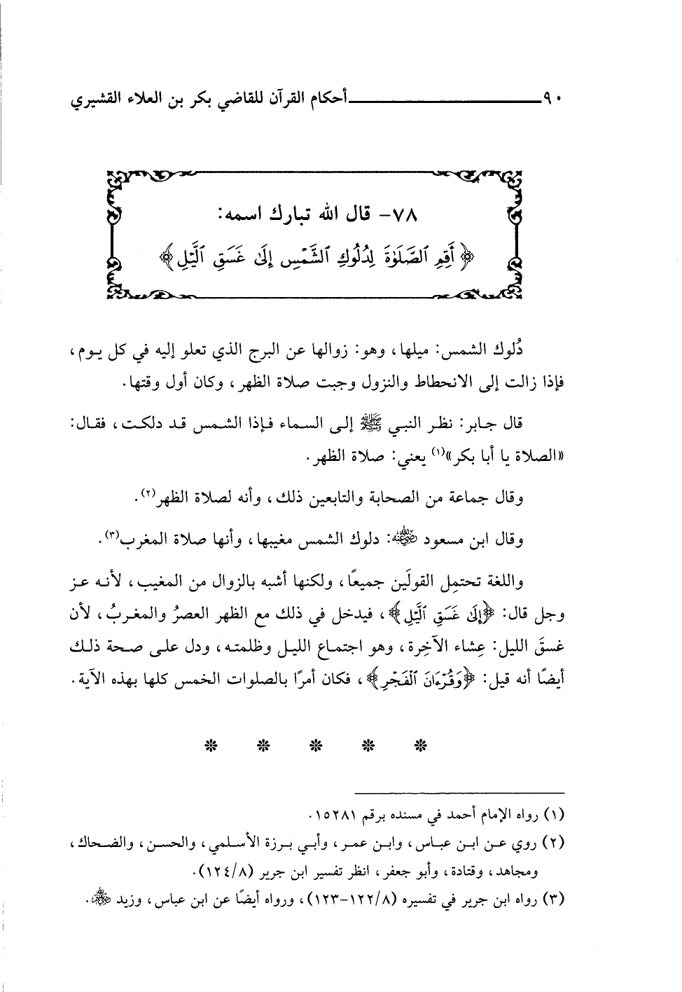 ٧٨ - قال اللَّه تبارك اسمه: {أَقِمِ الصَّلَاةَ لِدُلُوكِ الشَّمْسِ إِلَى غَسَقِ اللَّيْلِ}