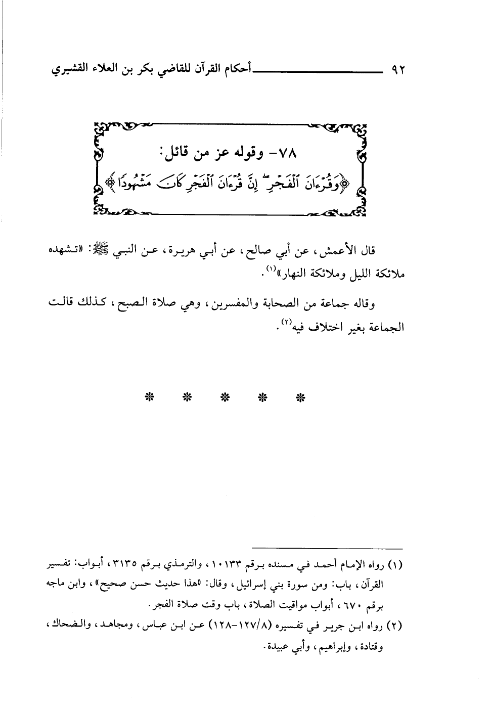 ٧٨ - وقوله عز من قائل: {وَقُرْآنَ الْفَجْرِ إِنَّ قُرْآنَ الْفَجْرِ كَانَ مَشْهُودًا}