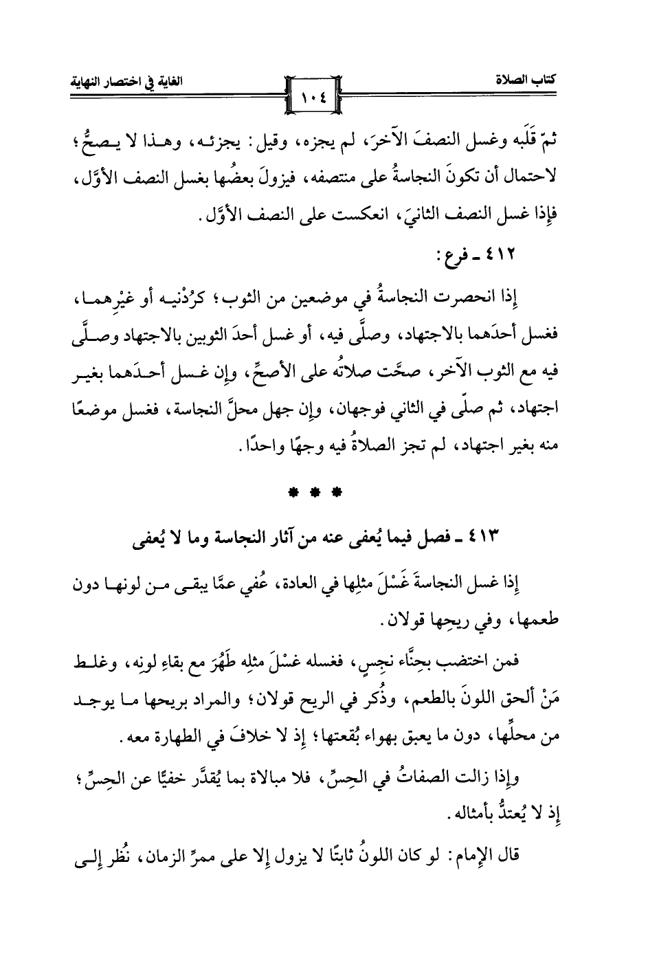 413 - فصل فيما يُعفى عنه من آثار النجاسة وما لا يُعفى