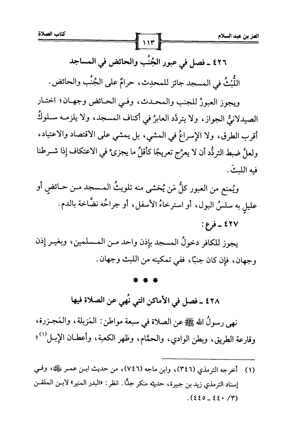426 - فصل في عبور الجُنُب والحائض في المساجد