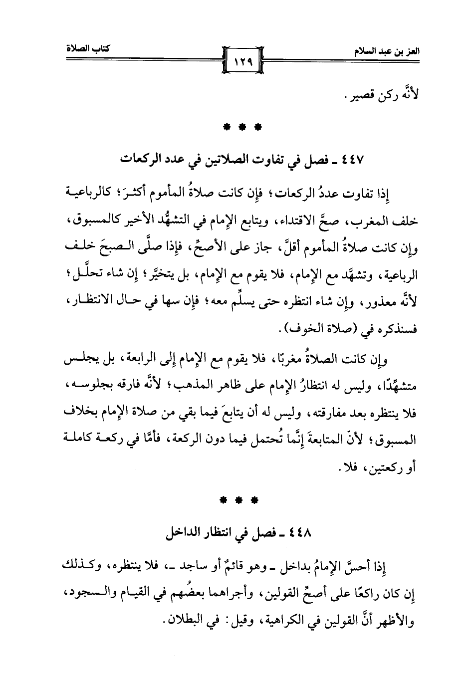447 - فصل في تفاوت الصلاتين في عدد الركعات