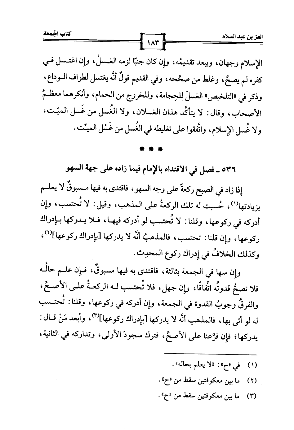 536 - فصل في الاقتداء بالإمام فيما زاده على جهة السهو