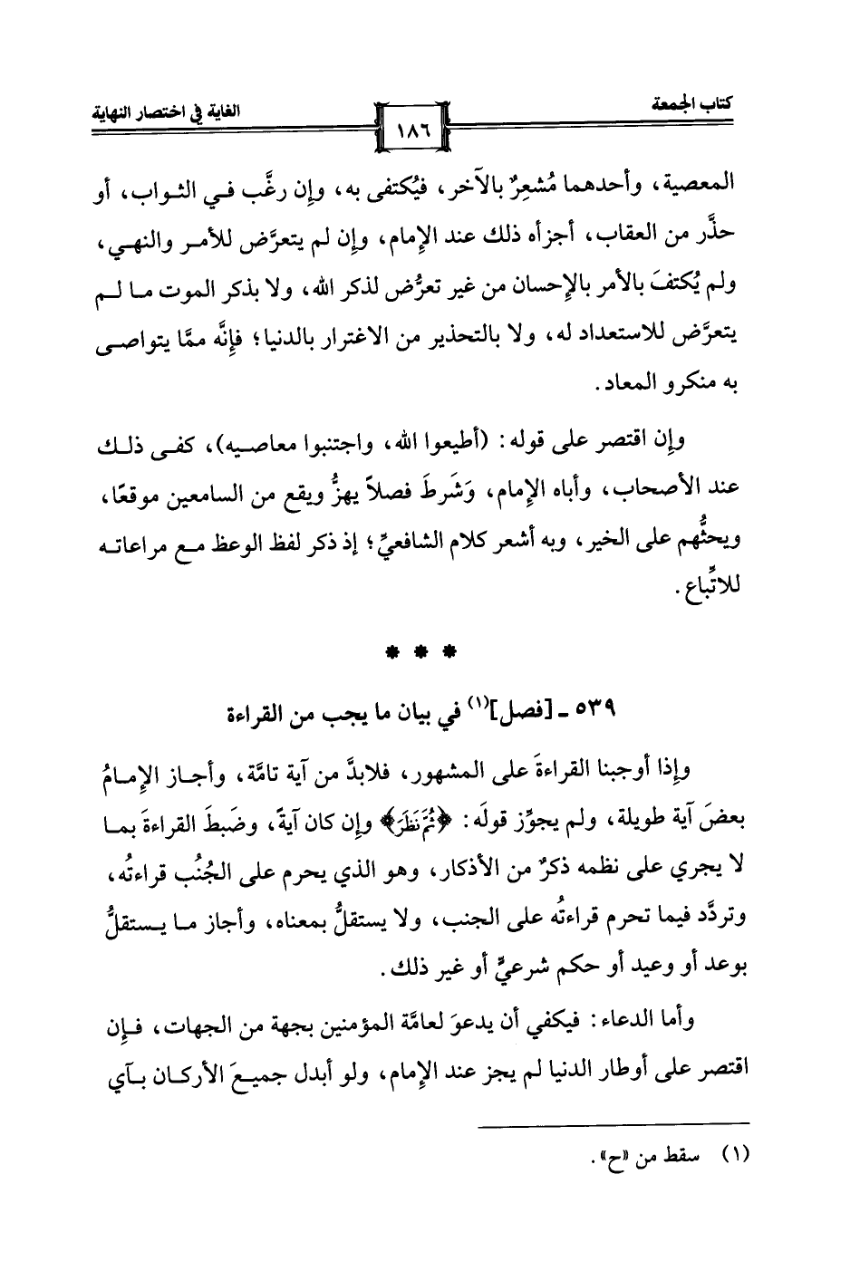 539 - [فصل] (¬1) في بيان ما يجب من القراءة