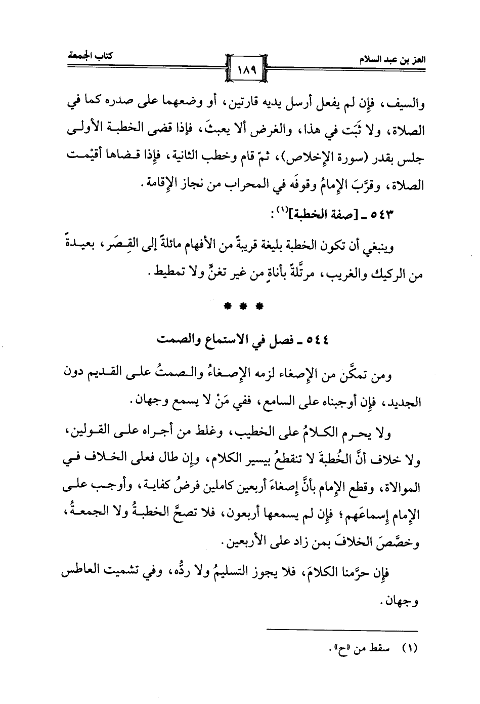 ولا يحرم الكلامُ على الخطيب، وغلط من أجراه على القولين، ولا خلاف أنَّ الخُطبةَ لا تنقطعُ بيسير الكلام، وإِن طال فعلى الخلاف في الموالاة، وقطع الإِمام بأنَّ إِصغاءَ أربعين كاملين فرضُ كفاية، وأوجب على الإِمام إِسماعَهم؛ فإِن لم يسمعها أربعون، فلا تصحَّ الخطبةُ ولا الجمعةُ، وخصَّصَ الخلافَ بمن زاد على الأربعين.
