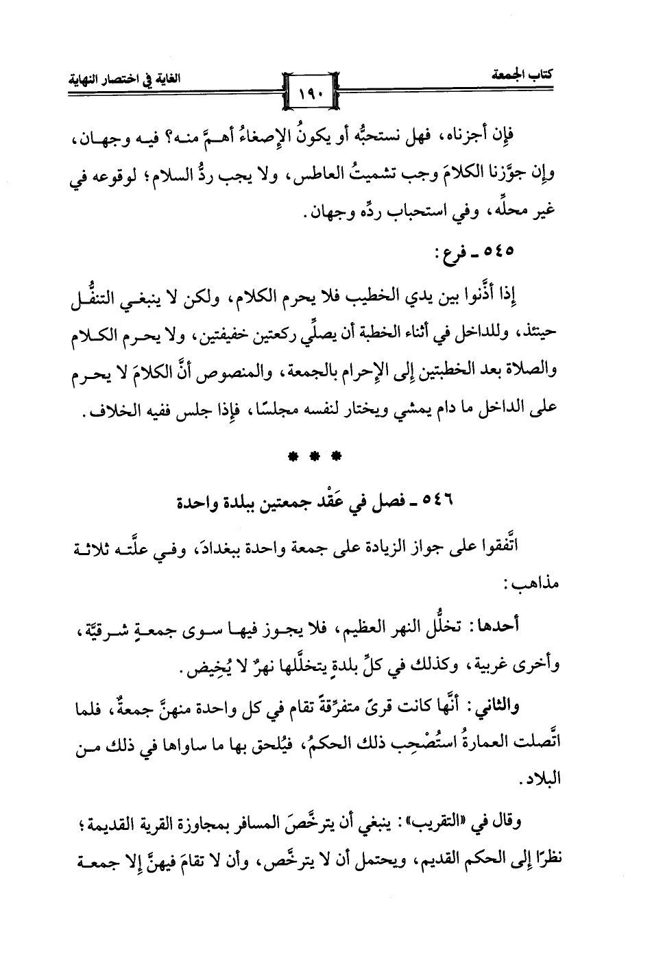 546 - فصل في عَقْد جمعتين ببلدة واحدة