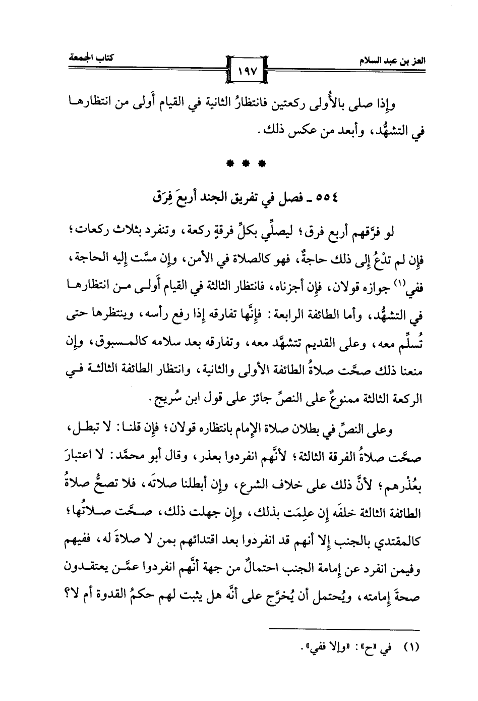 554 - فصل في تفريق الجند أربعَ فِرَق