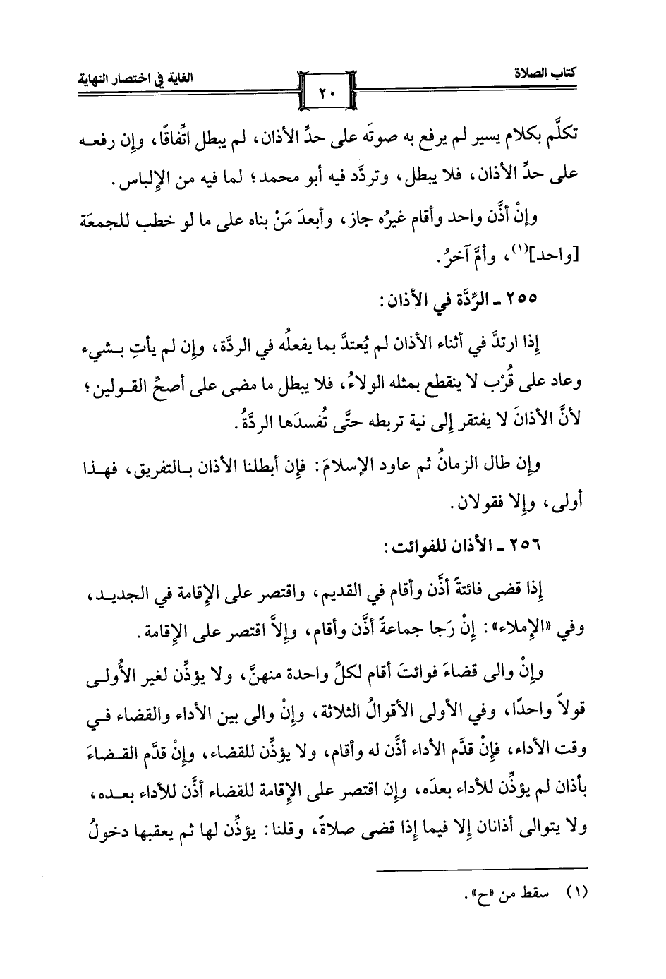 تكلَّم بكلام يسير لم يرفع به صوتَه على حدِّ الأذان، لم يبطل اتِّفاقًا، وإن رفعه على حدِّ الأذان، فلا يبطل، وتردَّد فيه أبو محمد؛ لما فيه من الإِلباس.