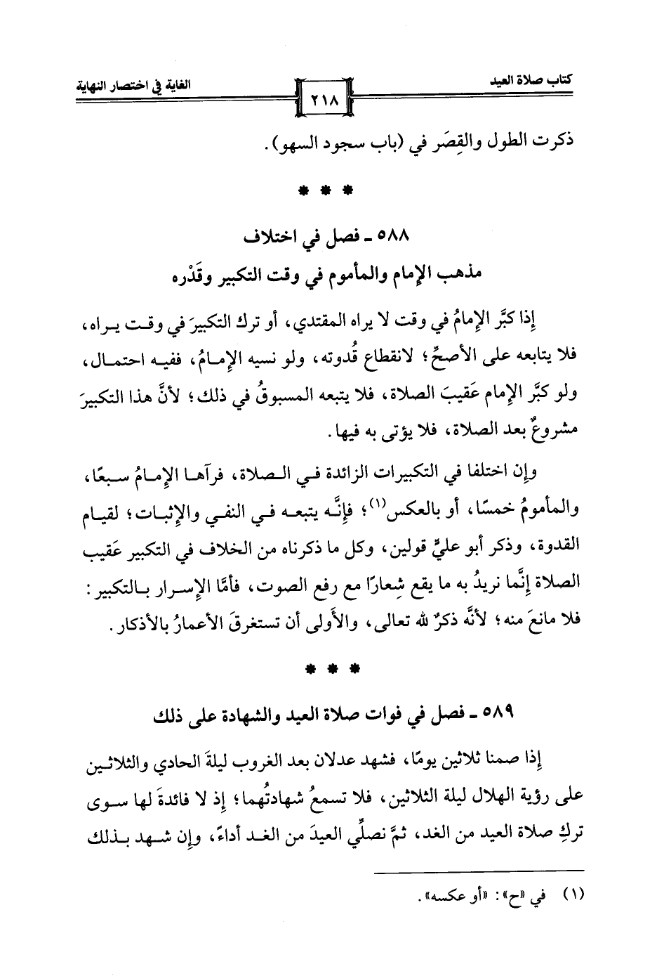 588 - فصل في اختلاف مذهب الإمام والمأموم في وقت التكبير وقَدْره