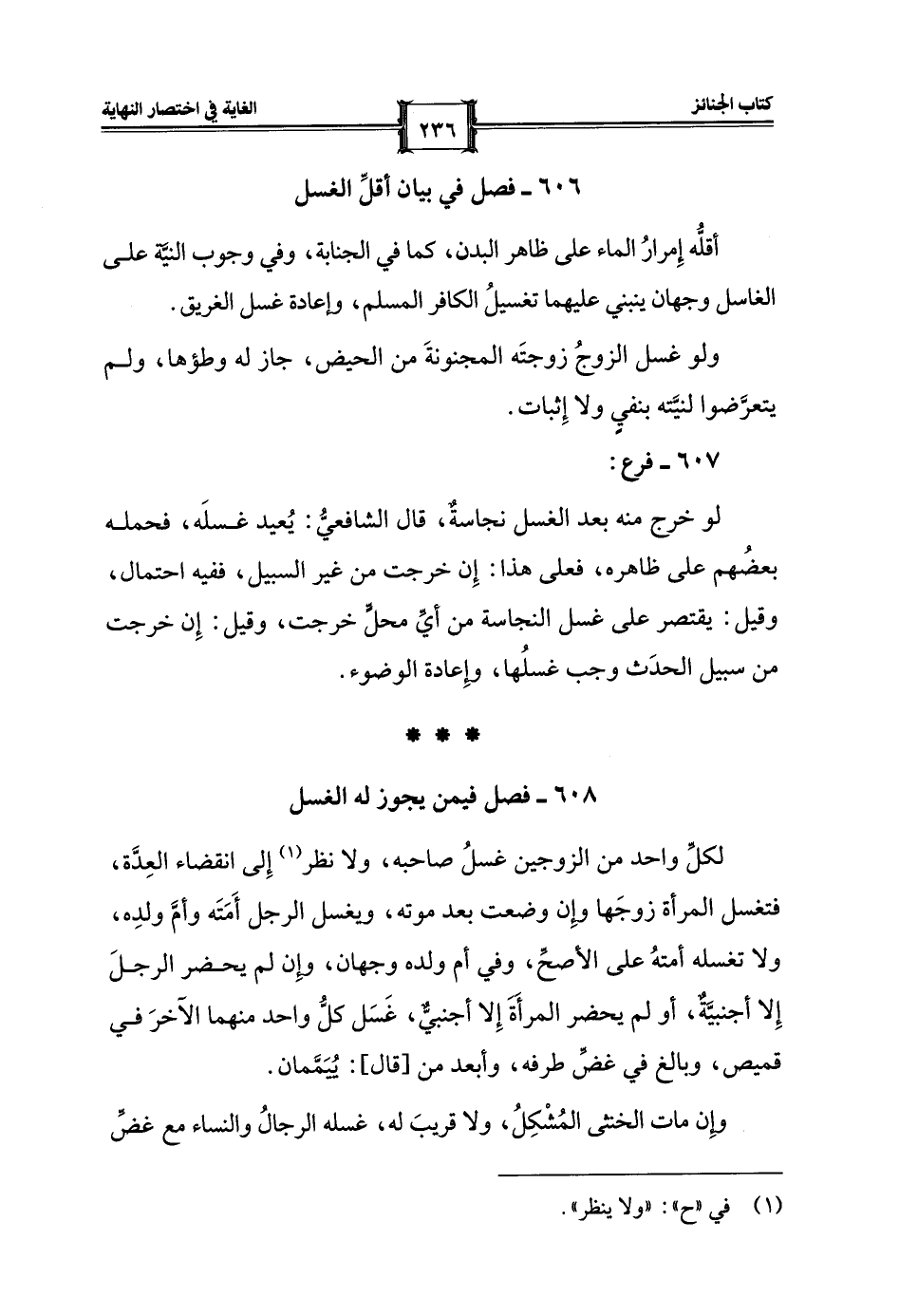 ولو غسل الزوجُ زوجتَه المجنونةَ من الحيض، جاز له وطؤها، ولم يتعرَّضوا لنيَّته بنفيٍ ولا إِثبات.