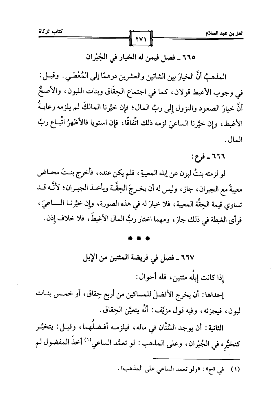 إحداهما: أن يخرج الأفضلَ للمساكين من أربع حِقاق، أو خمس بنات لبون، فيجزئه، وفيه قول مزيَّف: أنَّه يتعيَّن الحِقاق.