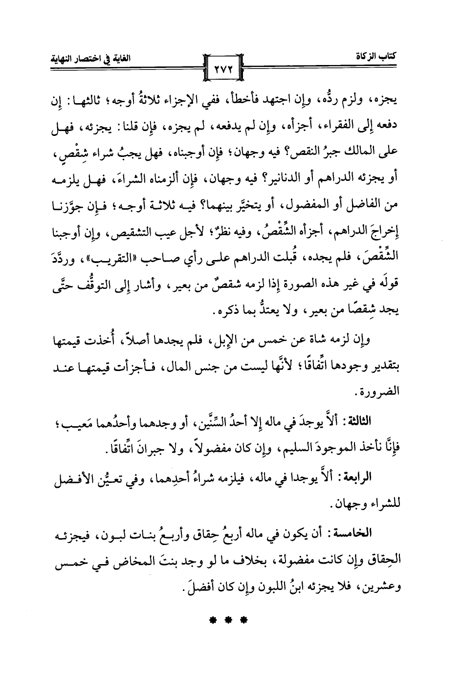 الخامسة: أن يكون في ماله أربعُ حِقاق وأربعُ بنات لبون، فيجزئه الحِقاق وإِن كانت مفضولة، بخلاف ما لو وجد بنتَ المخاض في خمس وعشرين، فلا يجزئه ابن اللبون وإِن كان أفضلَ.