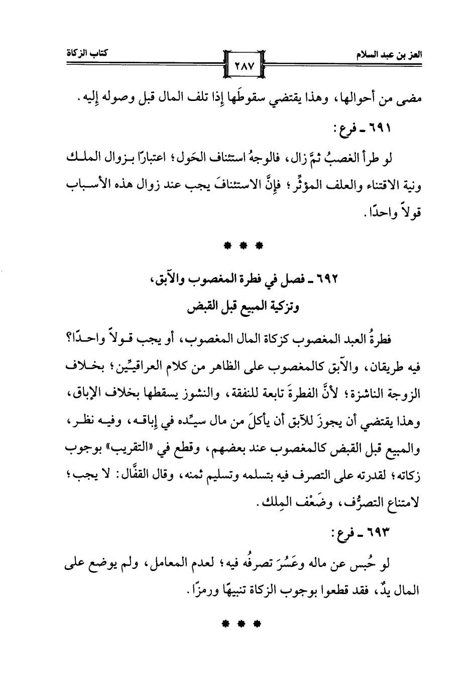 692 - فصل في فطرة المغصوب والآبق، وتزكية المبيع قبل القبض