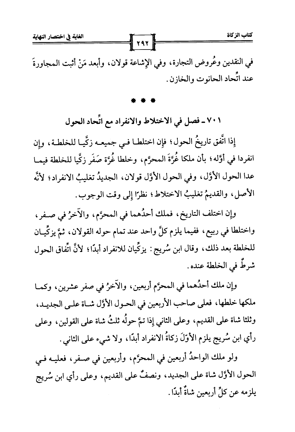 701 - فصل في الاختلاط والانفراد مع اتِّحاد الحول